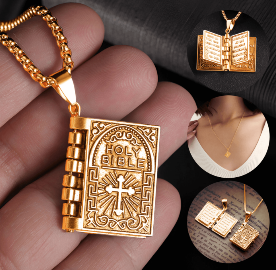 ✝️ Colier creștin cu Biblie în miniatură✝️